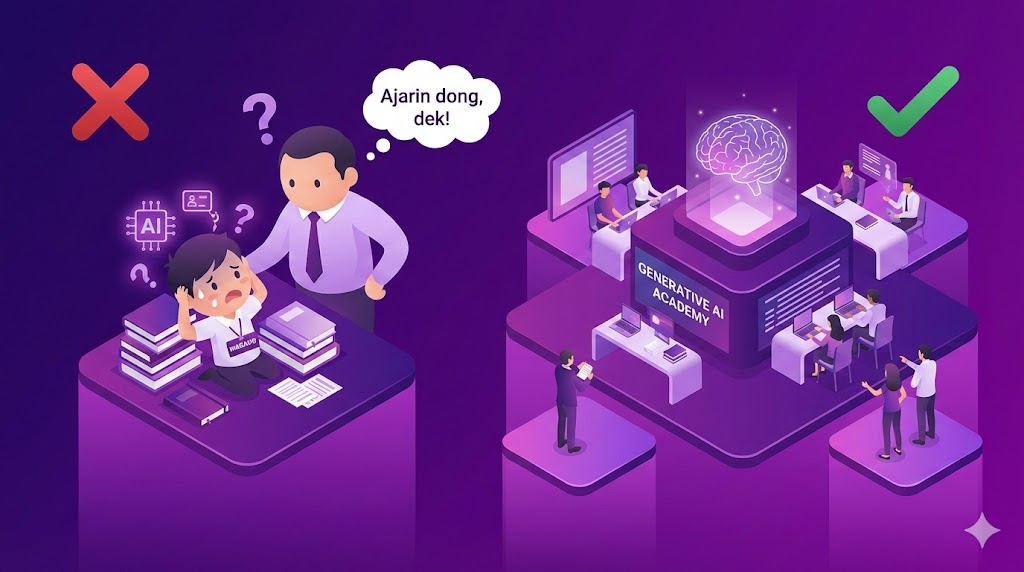AI seharusnya mendukung kecerdasan manusia, bukan menggantikannya. Kami mengajarkan cara mengoptimalkan AI tanpa mengorbankan kualitas berpikir dan kreativitas.